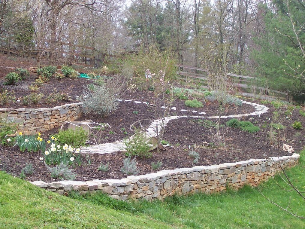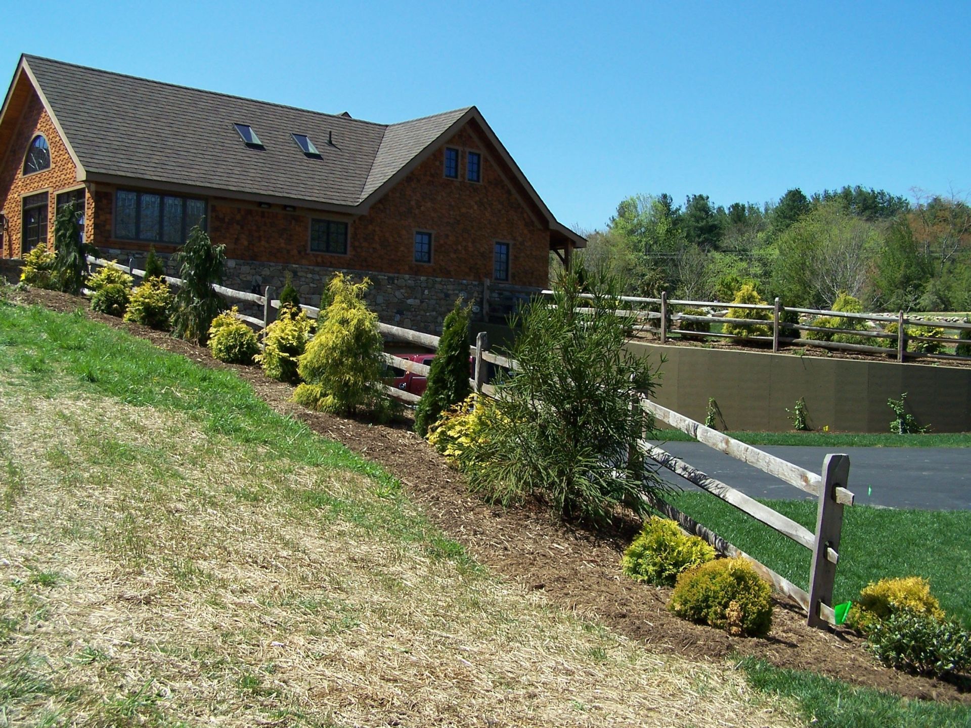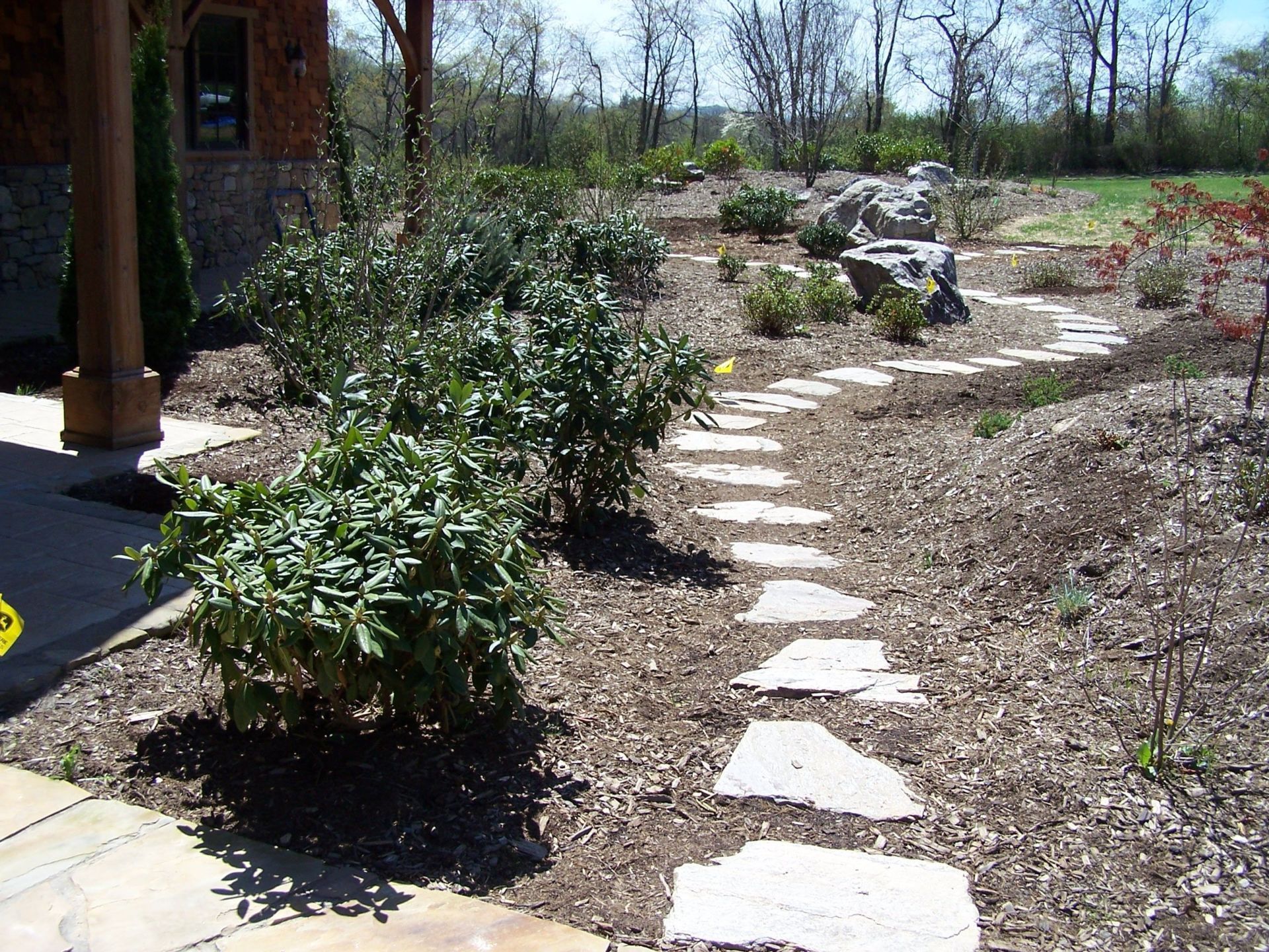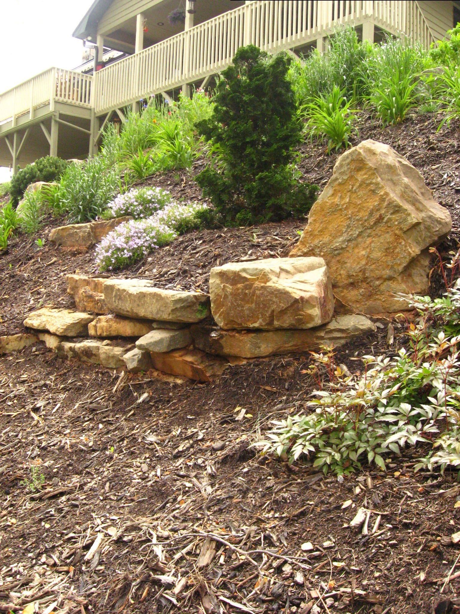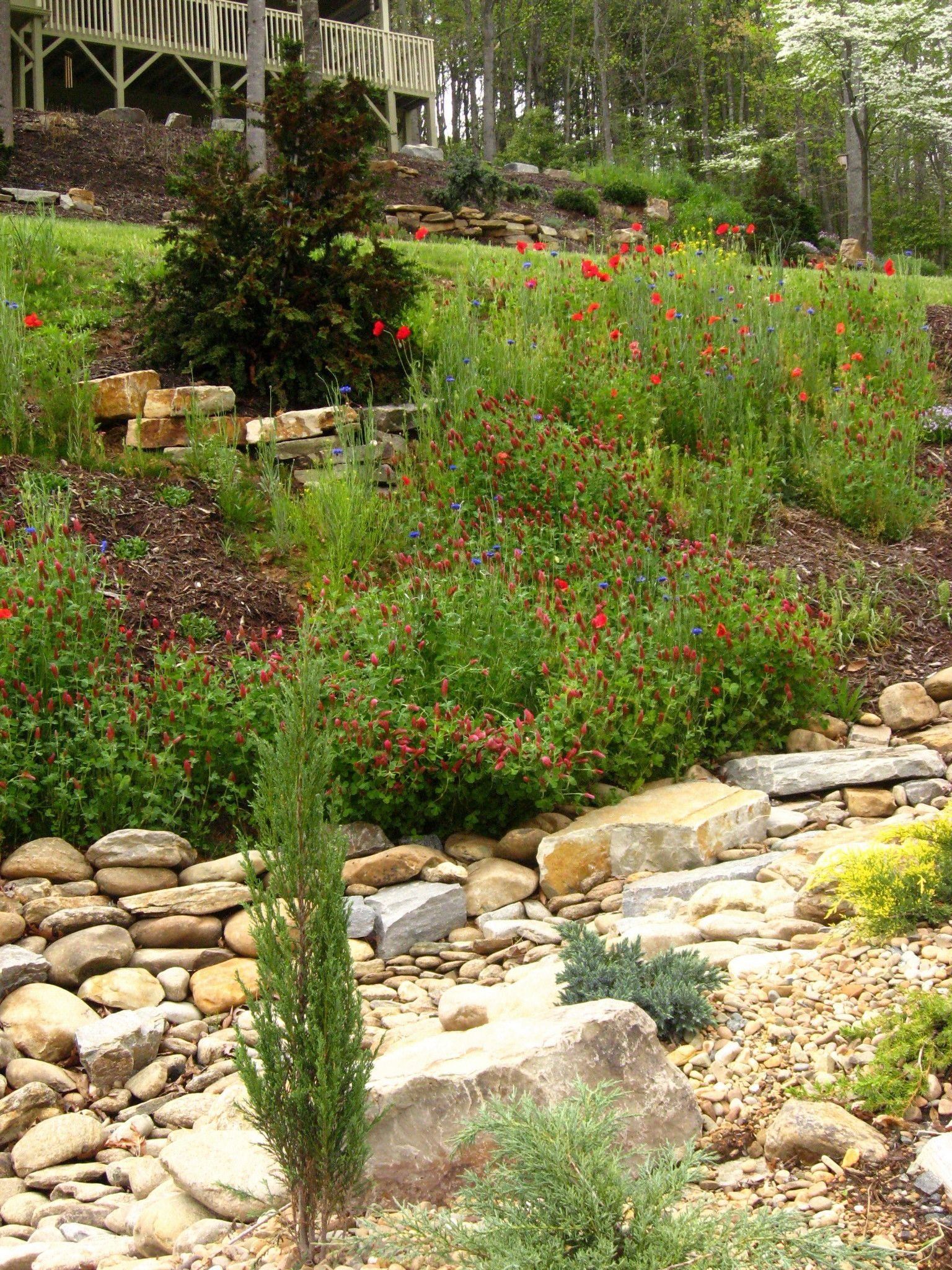 (PLEASE NOTE: PLANTING WORK IS INDEFINITELY ON HOLD AT THIS TIME.) In our 3 General Landscaping photo galleries you will get a feel for the breadth, quality and variety of our work: Stone and timber retaining walls, eyebrows, walkways, stepping stones, stairways, patios, wildflower meadows, slope plantings, boulders and hardscaping, annuals, perennials, lawn space, terracing, drainage, grading, planting beds and garden beds, trees of all types and sizes, native plants and shrubs, edible gardens, fire pits, outdoor fireplaces, outdoor kitchens, courtyards, cottage gardens, play areas, drainage work, ponds and water features... Please visit our other photo galleries