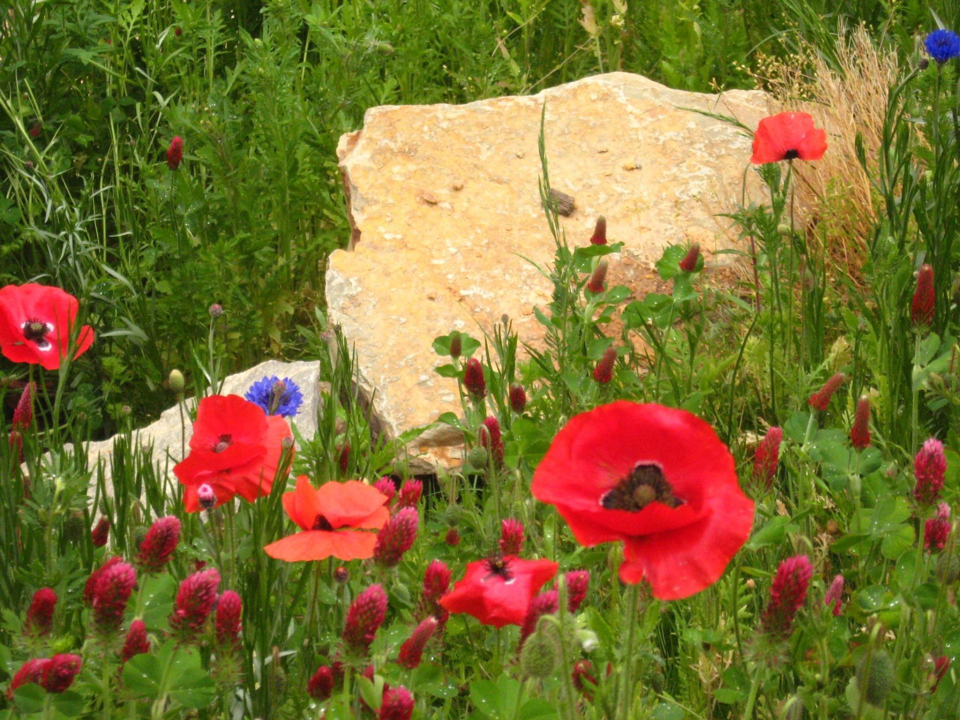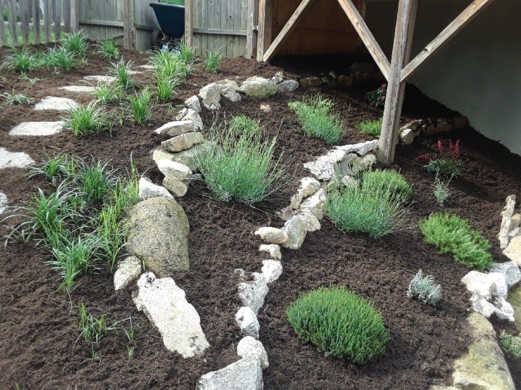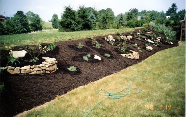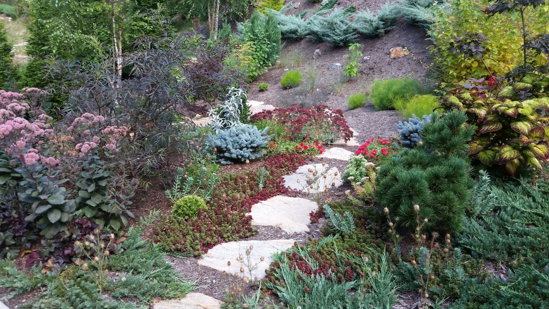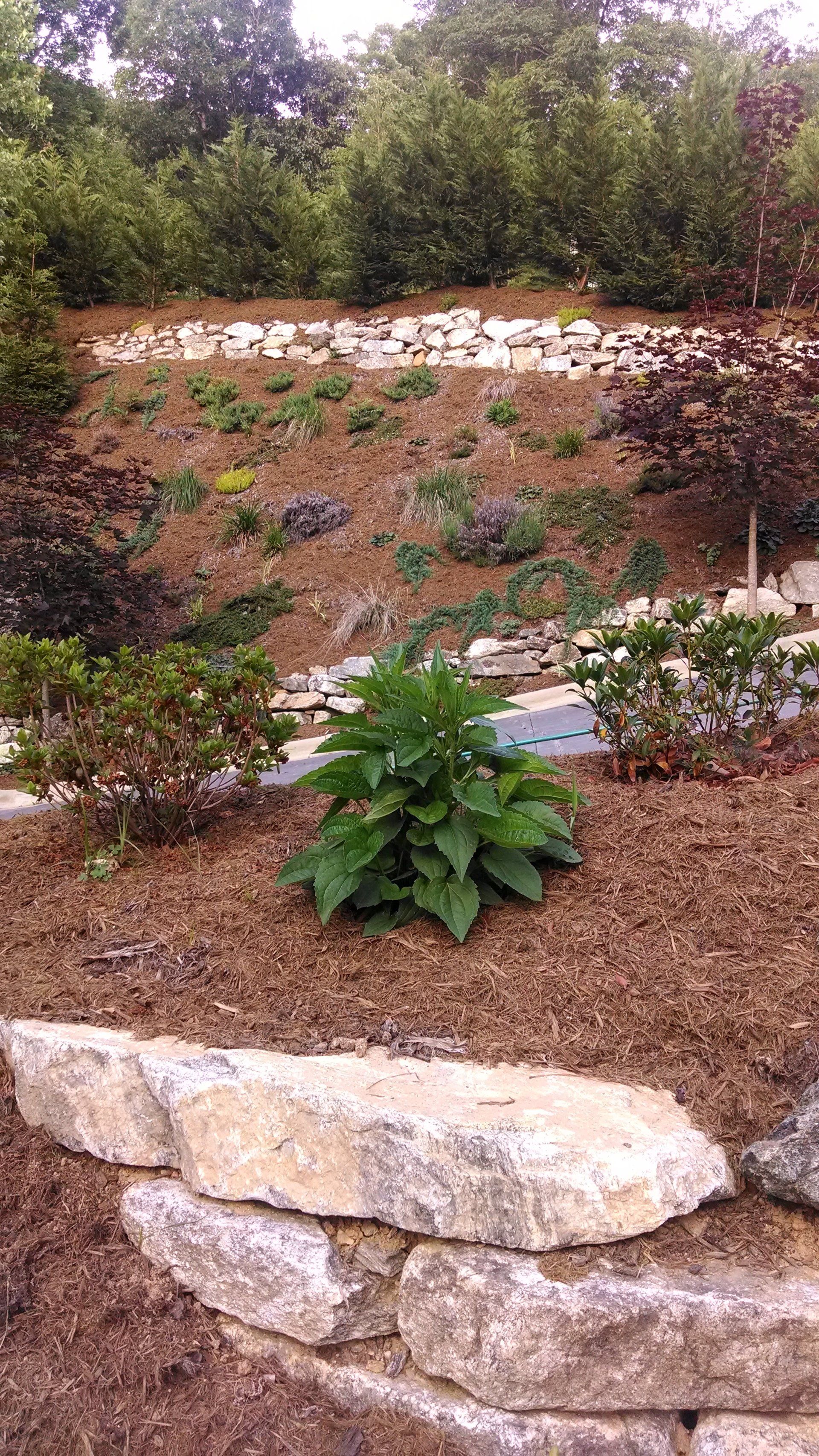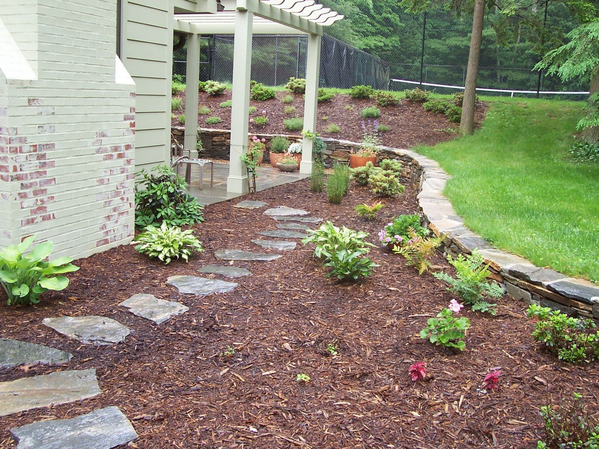 (PLEASE NOTE: PLANTING WORK IS INDEFINITELY ON HOLD AT THIS TIME.) In our 3 General Landscaping photo galleries you will get a feel for the breadth, quality and variety of our work: Stone and timber retaining walls, eyebrows, walkways, stepping stones, stairways, patios, wildflower meadows, slope plantings, boulders and hardscaping, annuals, perennials, lawn space, terracing, drainage, grading, planting beds and garden beds, trees of all types and sizes, native plants and shrubs, edible gardens, fire pits, outdoor fireplaces, outdoor kitchens, courtyards, cottage gardens, play areas, drainage work, ponds and water features... Please visit our other photo galleries