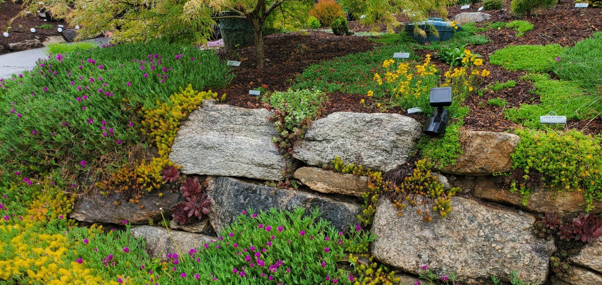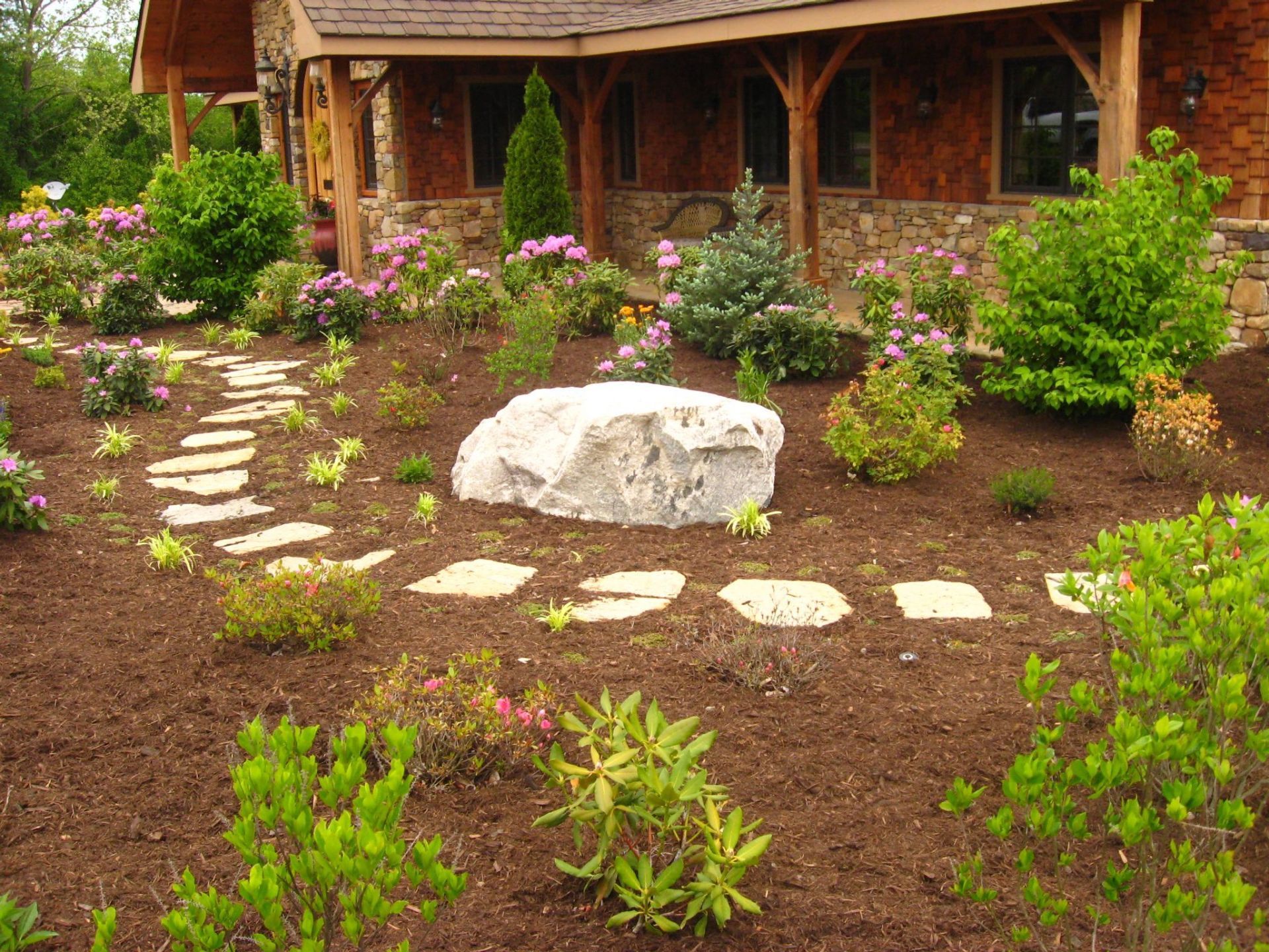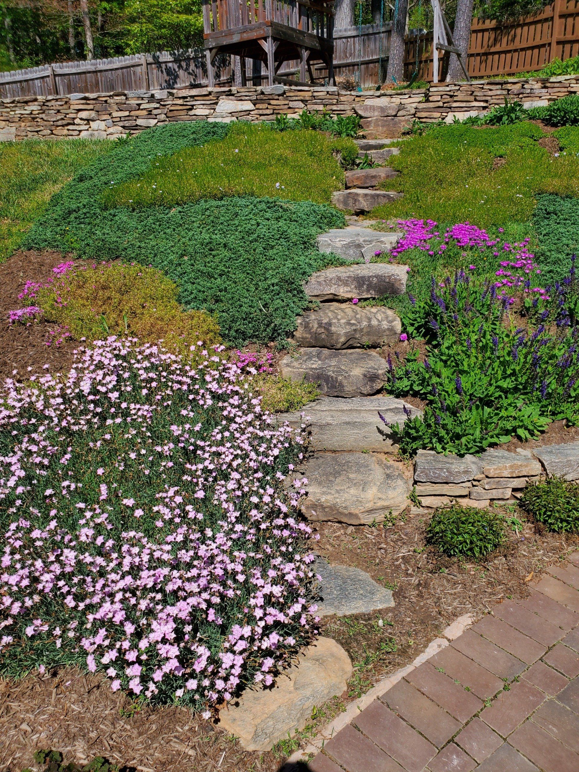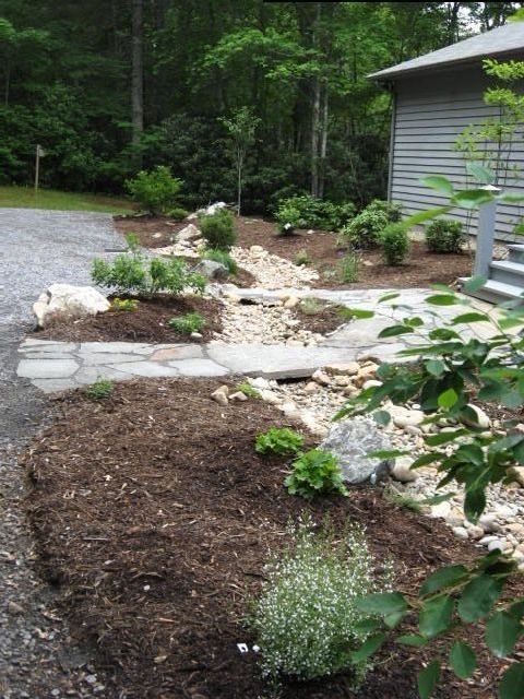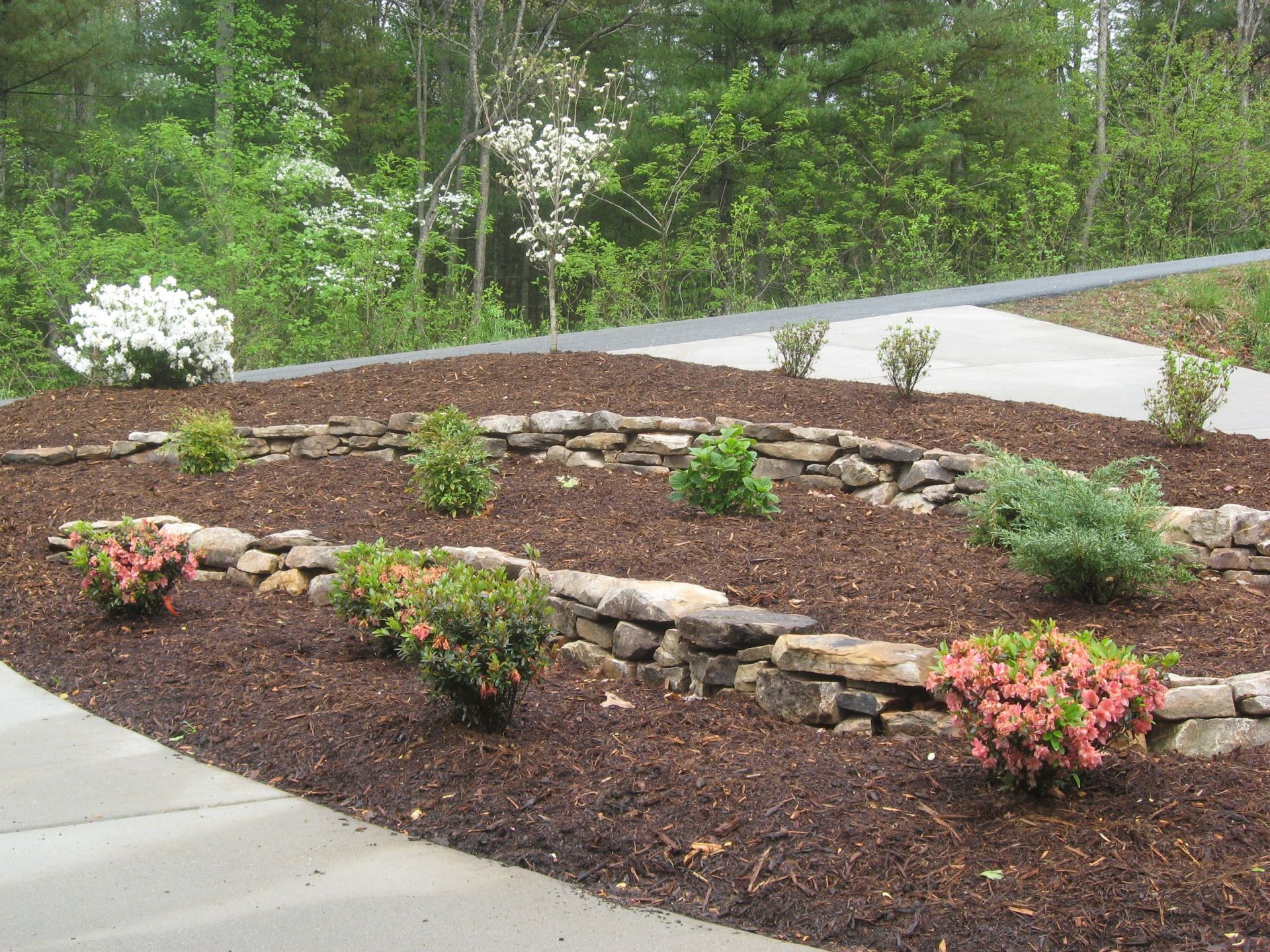 (PLEASE NOTE: PLANTING WORK IS INDEFINITELY ON HOLD AT THIS TIME.) In our 3 General Landscaping photo galleries you will get a feel for the breadth, quality and variety of our work: Stone and timber retaining walls, eyebrows, walkways, stepping stones, stairways, patios, wildflower meadows, slope plantings, boulders and hardscaping, annuals, perennials, lawn space, terracing, drainage, grading, planting beds and garden beds, trees of all types and sizes, native plants and shrubs, edible gardens, fire pits, outdoor fireplaces, outdoor kitchens, courtyards, cottage gardens, play areas, drainage work, ponds and water features... Please visit our other photo galleries