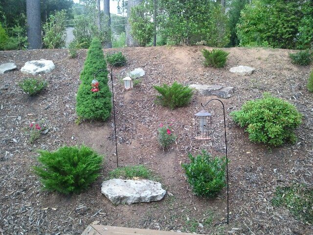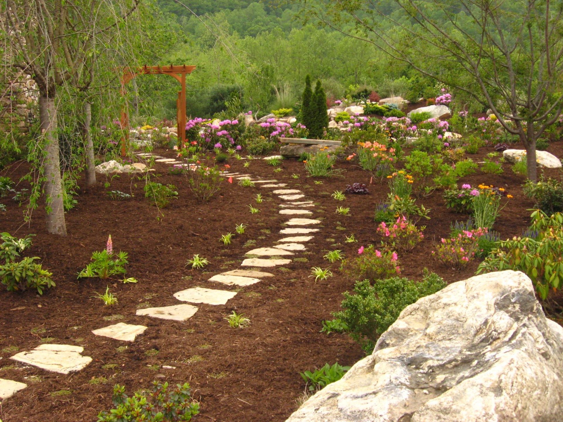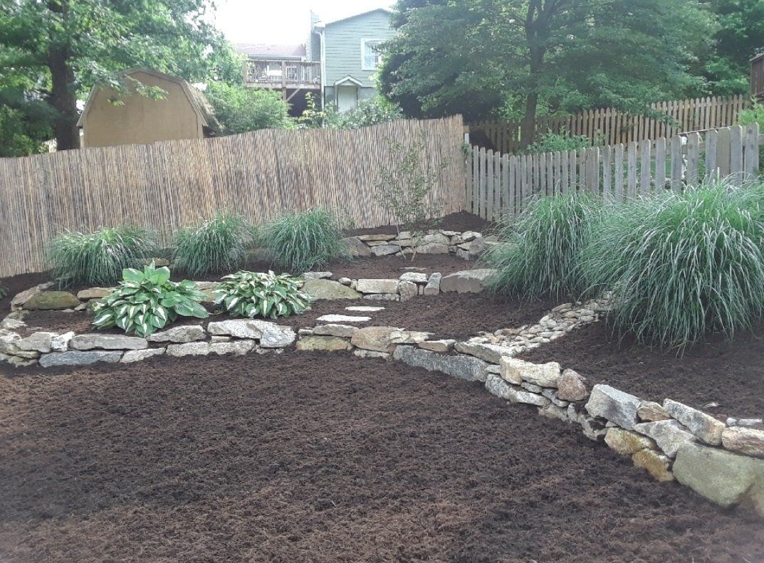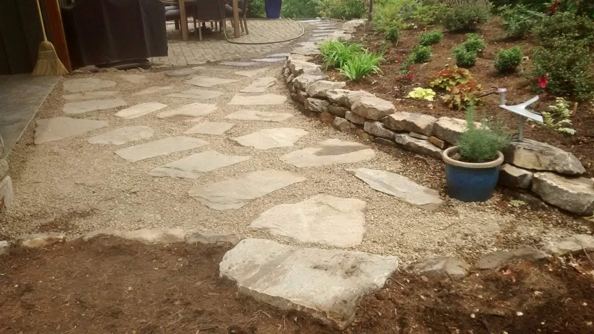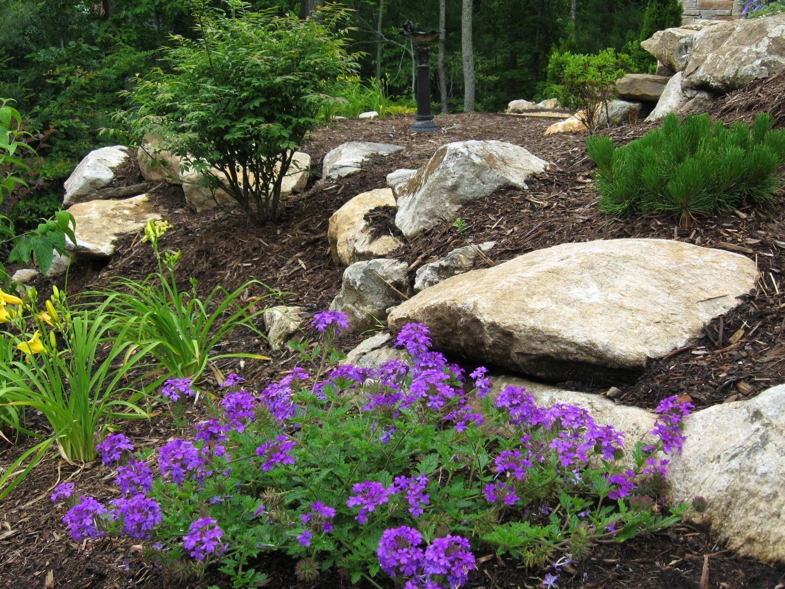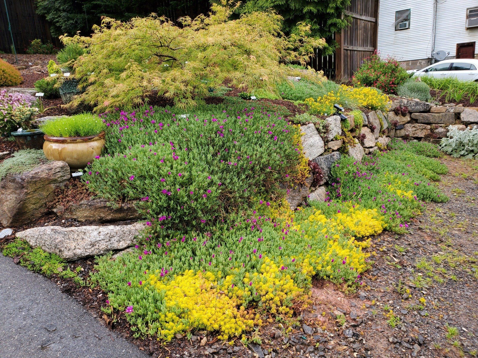 (PLEASE NOTE: PLANTING WORK IS INDEFINITELY ON HOLD AT THIS TIME.) In our 3 General Landscaping photo galleries you will get a feel for the breadth, quality and variety of our work: Stone and timber retaining walls, eyebrows, walkways, stepping stones, stairways, patios, wildflower meadows, slope plantings, boulders and hardscaping, annuals, perennials, lawn space, terracing, drainage, grading, planting beds and garden beds, trees of all types and sizes, native plants and shrubs, edible gardens, fire pits, outdoor fireplaces, outdoor kitchens, courtyards, cottage gardens, play areas, drainage work, ponds and water features... Please visit our other photo galleries