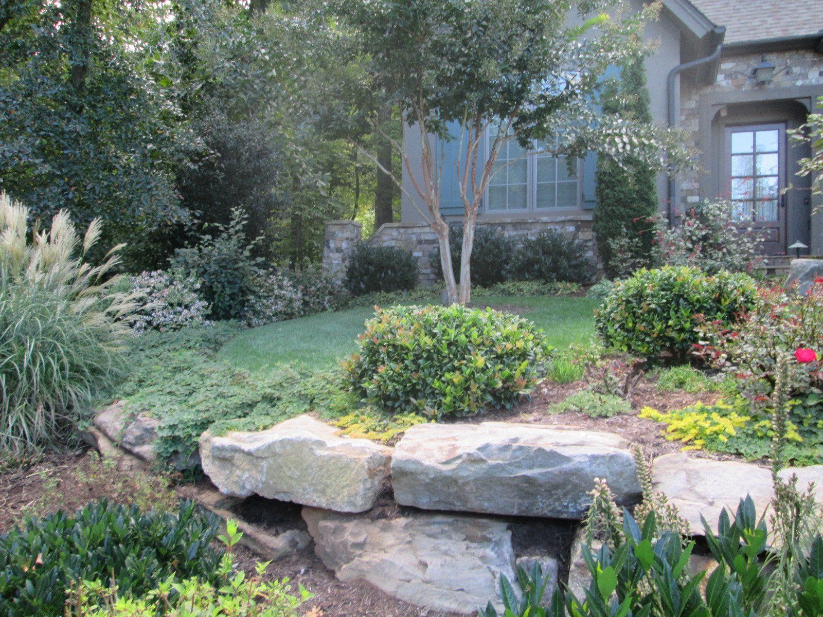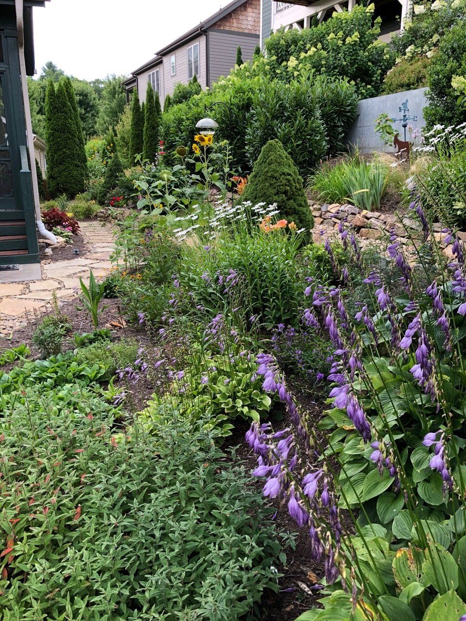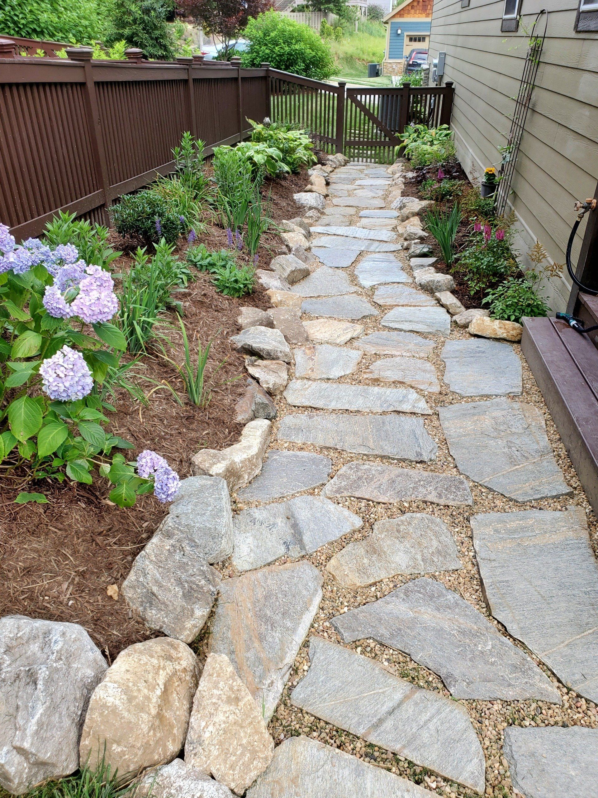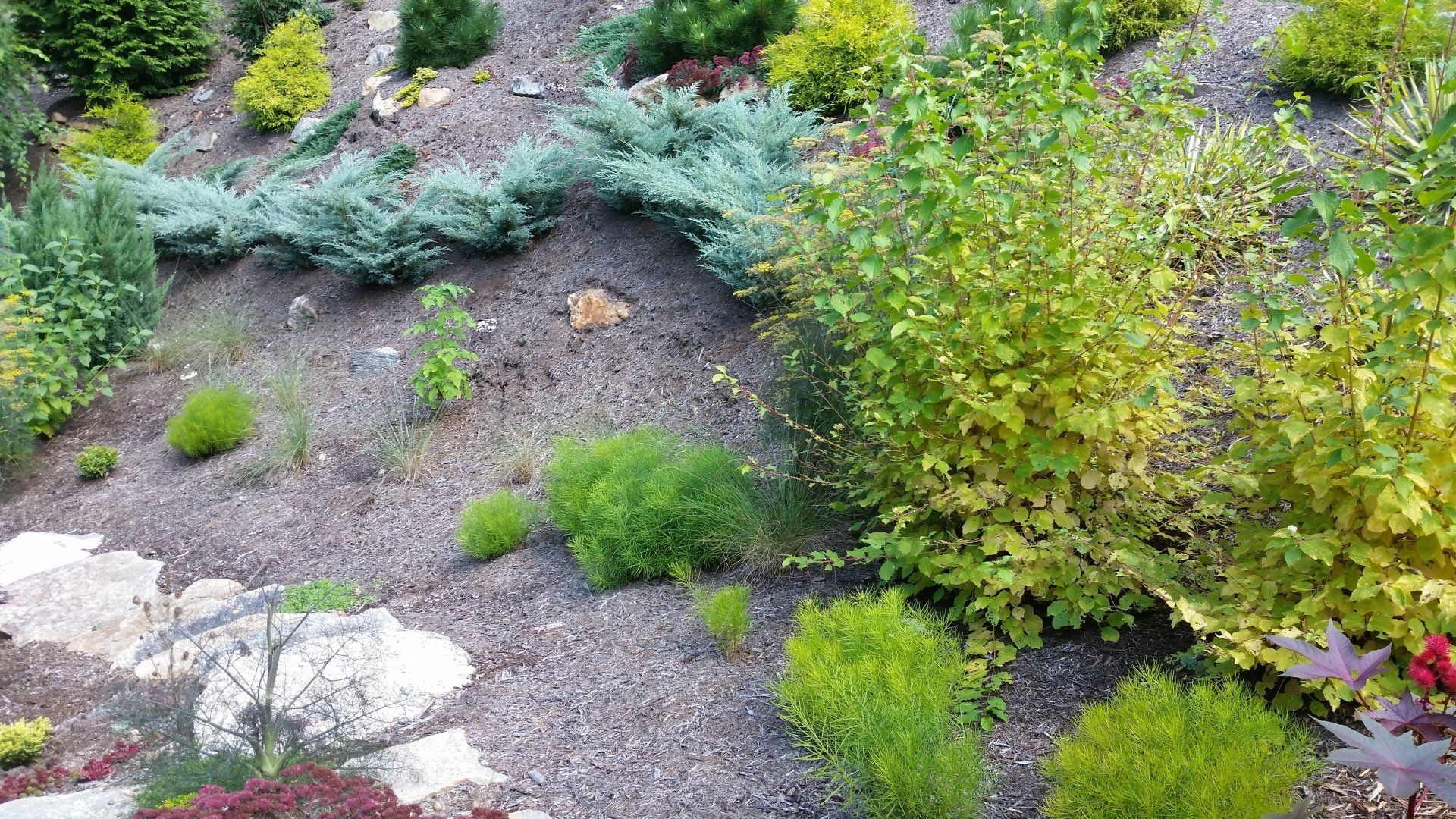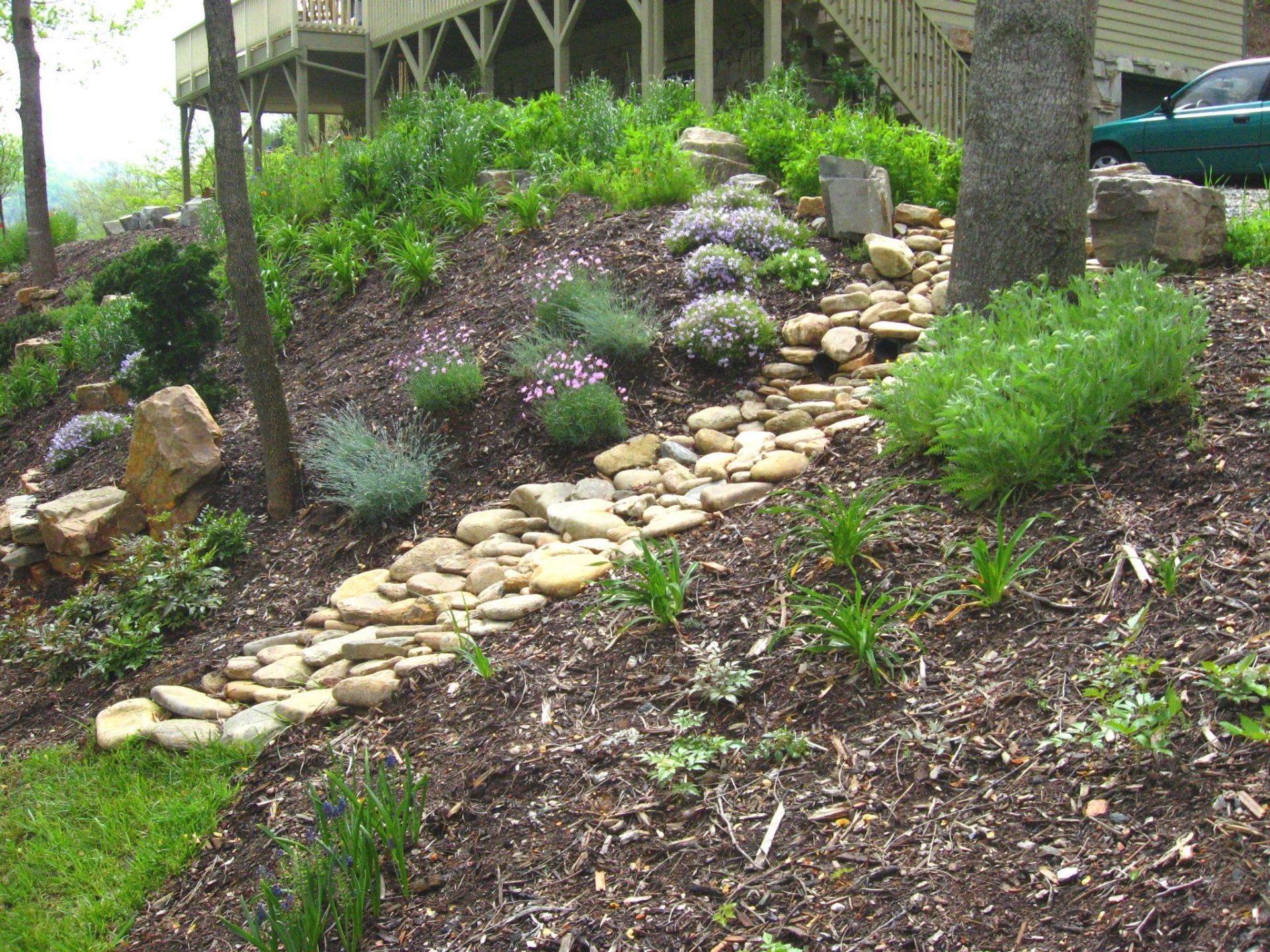 (PLEASE NOTE: PLANTING WORK IS INDEFINITELY ON HOLD AT THIS TIME.) In our 3 General Landscaping photo galleries you will get a feel for the breadth, quality and variety of our work: Stone and timber retaining walls, eyebrows, walkways, stepping stones, stairways, patios, wildflower meadows, slope plantings, boulders and hardscaping, annuals, perennials, lawn space, terracing, drainage, grading, planting beds and garden beds, trees of all types and sizes, native plants and shrubs, edible gardens, fire pits, outdoor fireplaces, outdoor kitchens, courtyards, cottage gardens, play areas, drainage work, ponds and water features... Please visit our other photo galleries