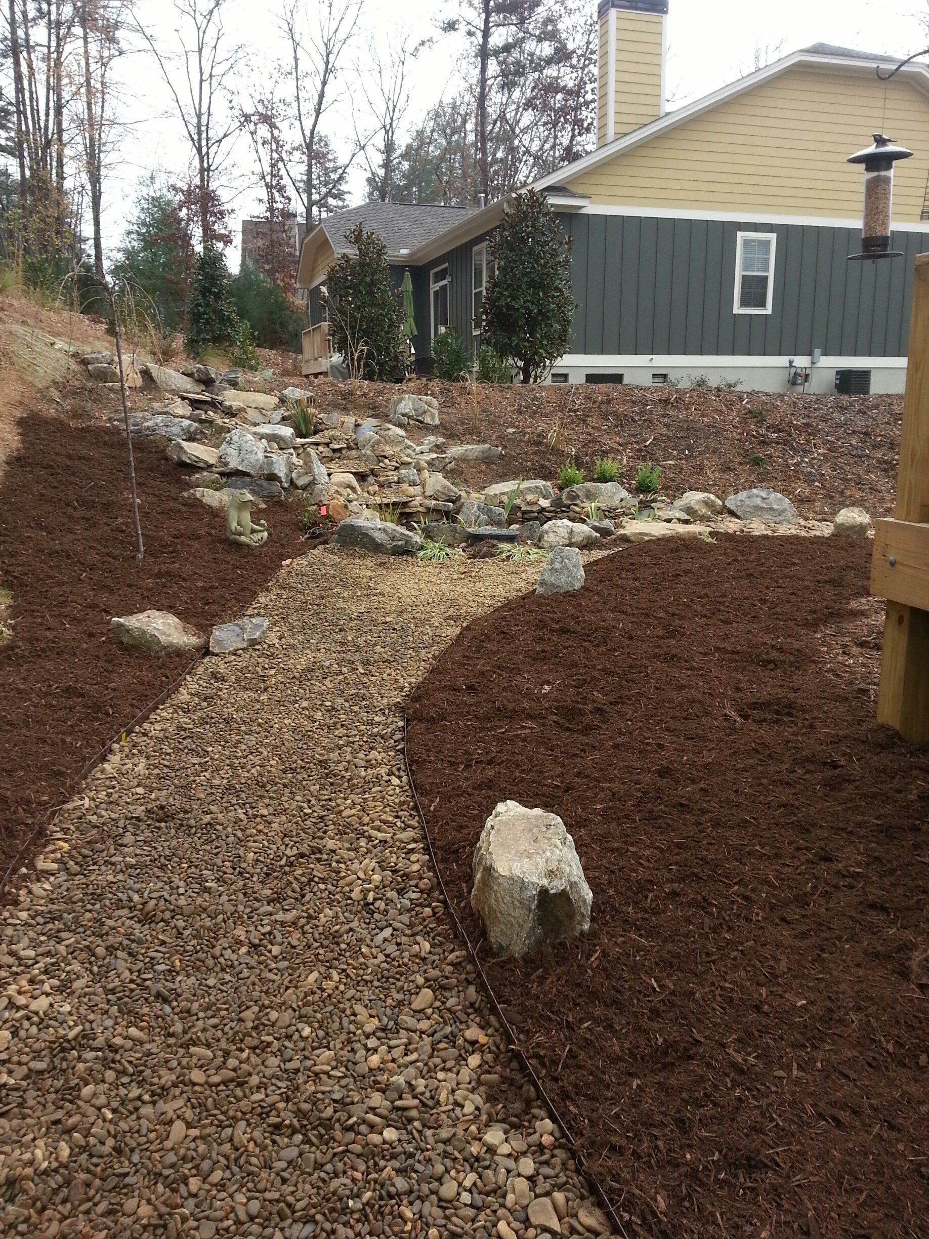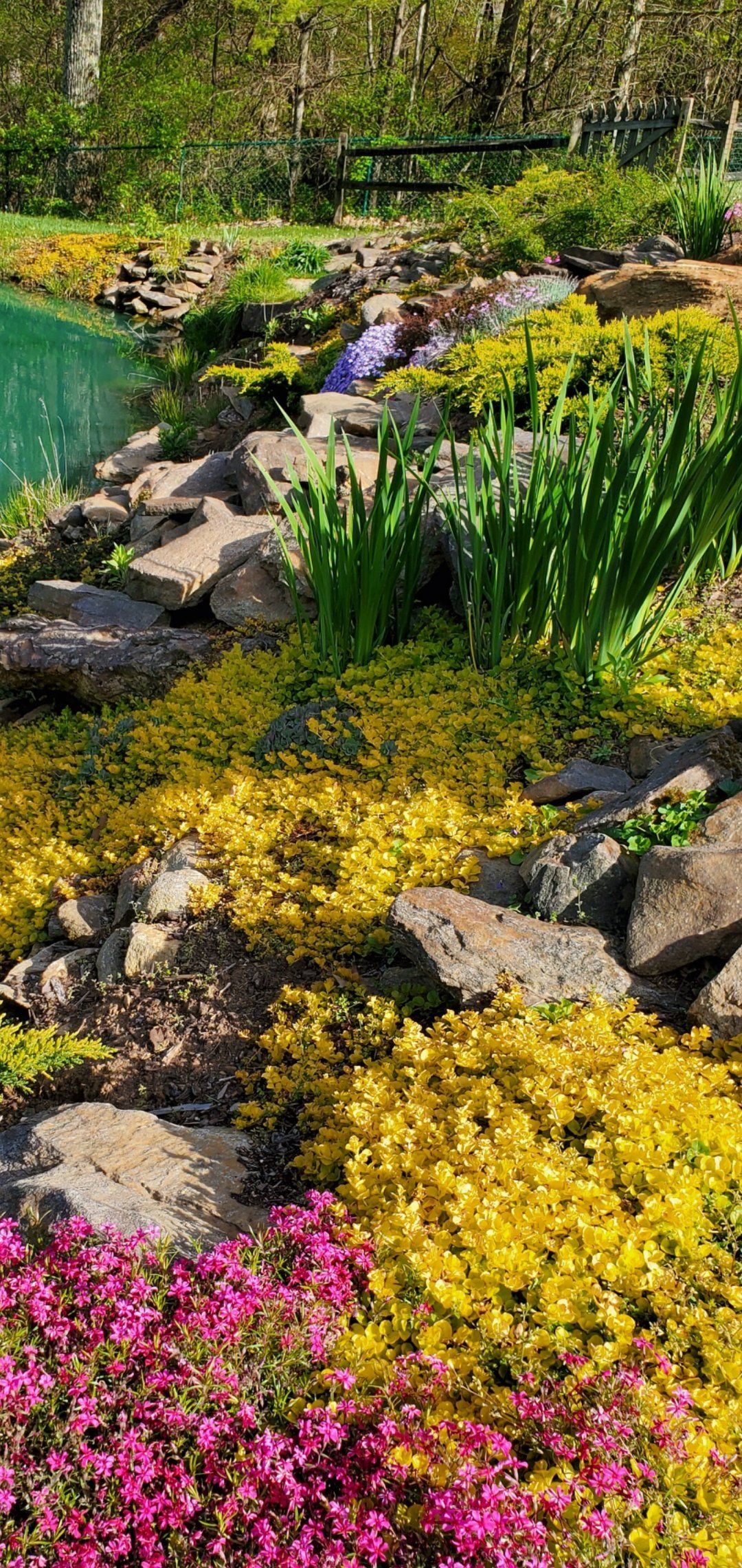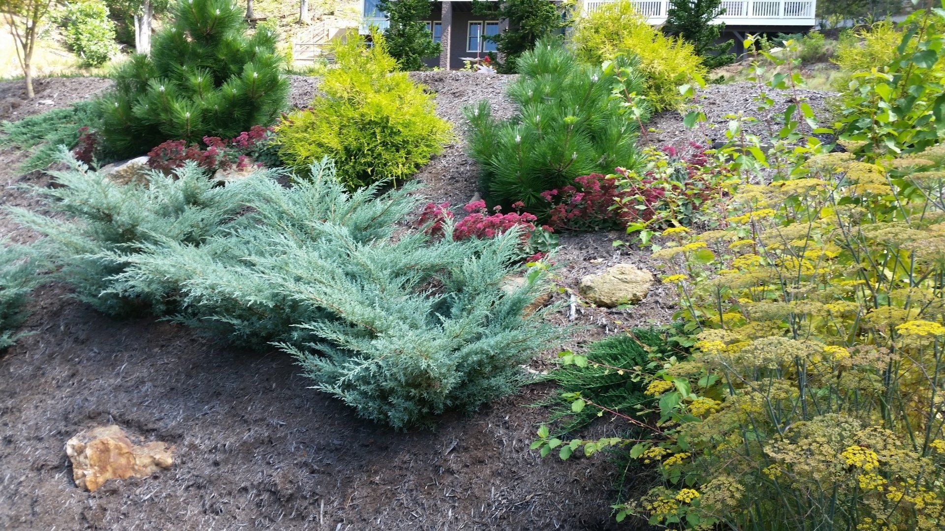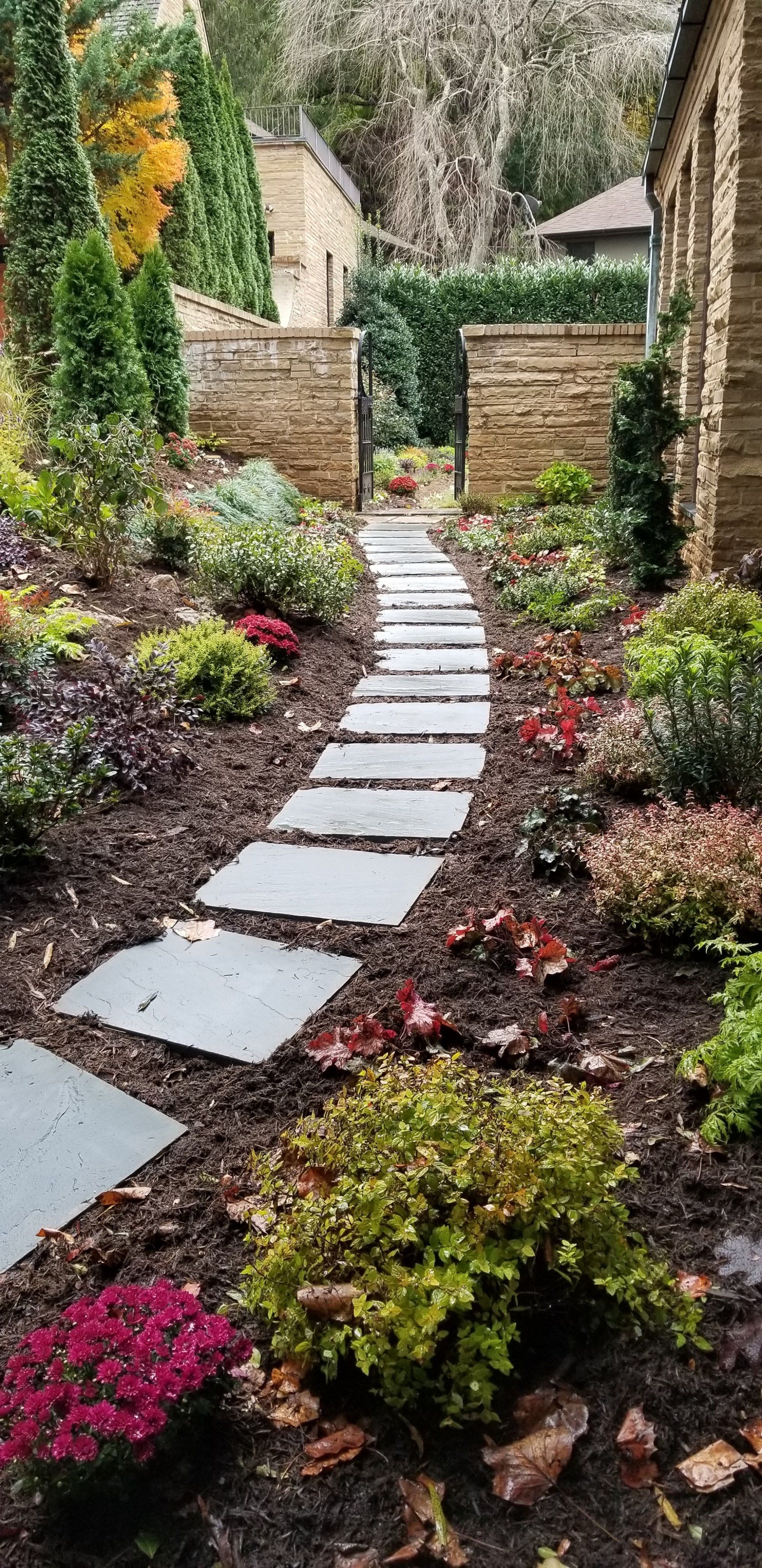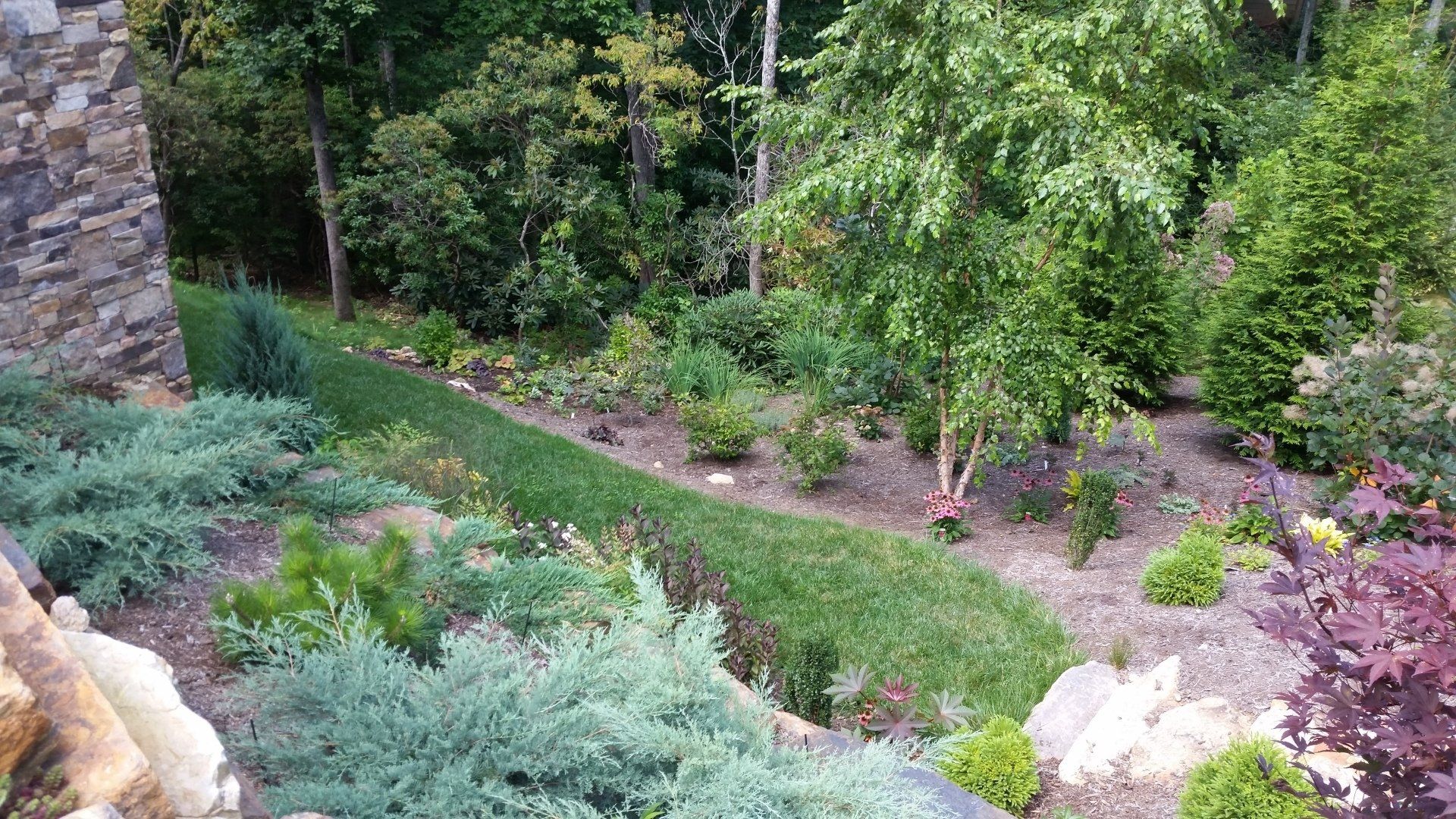 (PLEASE NOTE: PLANTING WORK IS INDEFINITELY ON HOLD AT THIS TIME.) In our 3 General Landscaping photo galleries you will get a feel for the breadth, quality and variety of our work: Stone and timber retaining walls, eyebrows, walkways, stepping stones, stairways, patios, wildflower meadows, slope plantings, boulders and hardscaping, annuals, perennials, lawn space, terracing, drainage, grading, planting beds and garden beds, trees of all types and sizes, native plants and shrubs, edible gardens, fire pits, outdoor fireplaces, outdoor kitchens, courtyards, cottage gardens, play areas, drainage work, ponds and water features... Please visit our other photo galleries