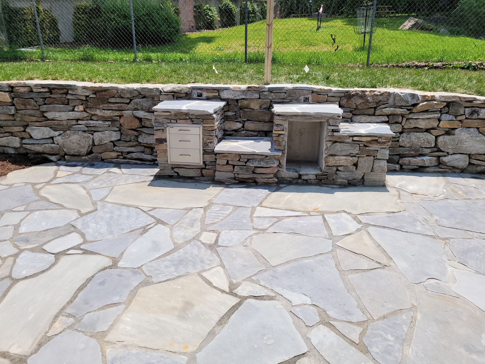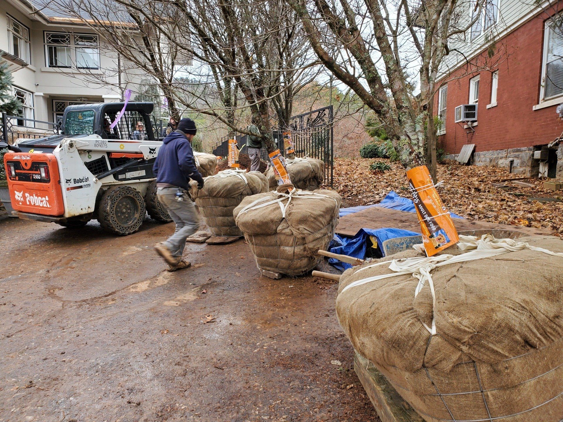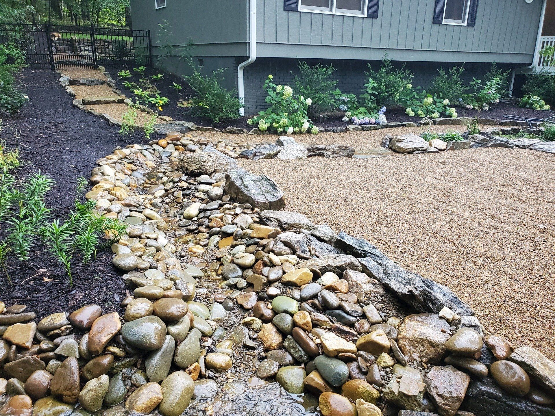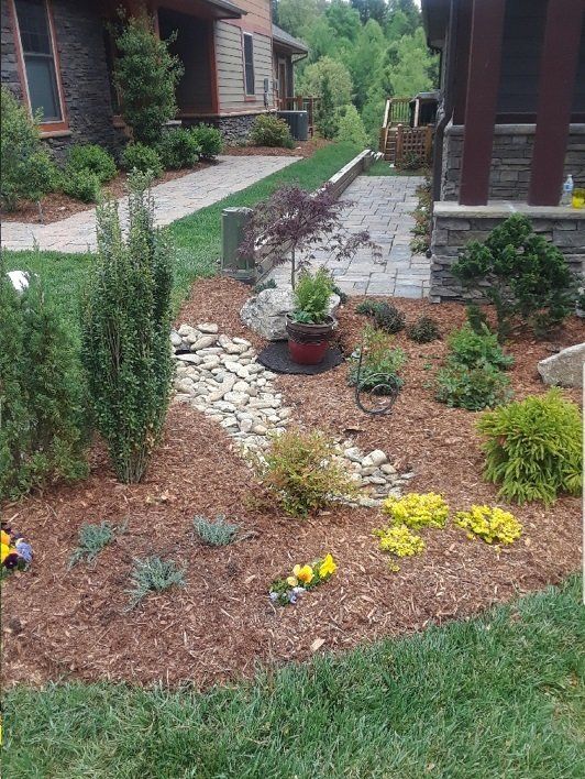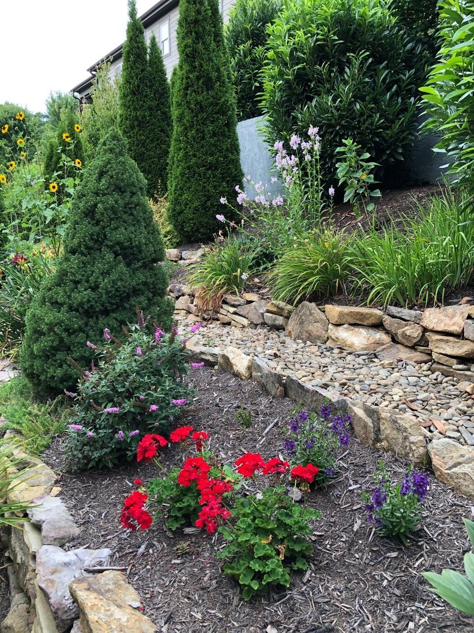 (PLEASE NOTE: PLANTING WORK IS INDEFINITELY ON HOLD AT THIS TIME.) In our 3 General Landscaping photo galleries you will get a feel for the breadth, quality and variety of our work: Stone and timber retaining walls, eyebrows, walkways, stepping stones, stairways, patios, wildflower meadows, slope plantings, boulders and hardscaping, annuals, perennials, lawn space, terracing, drainage, grading, planting beds and garden beds, trees of all types and sizes, native plants and shrubs, edible gardens, fire pits, outdoor fireplaces, outdoor kitchens, courtyards, cottage gardens, play areas, drainage work, ponds and water features... Please visit our other photo galleries