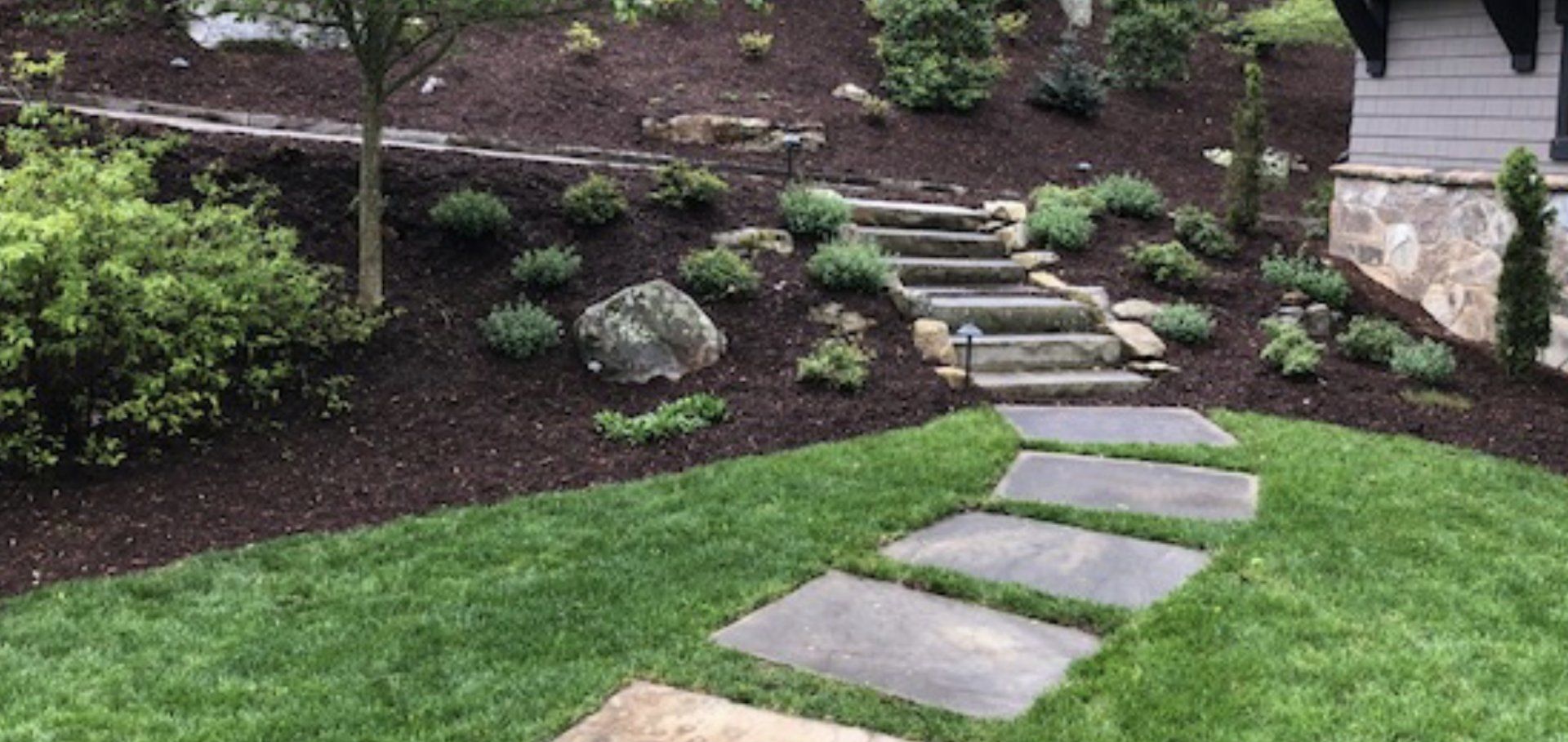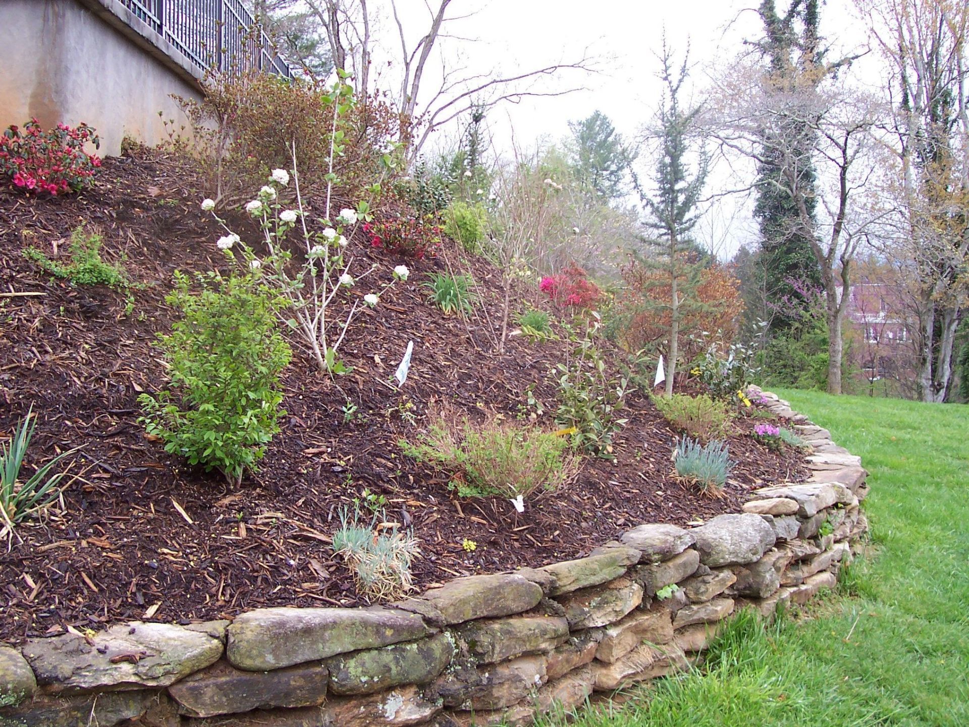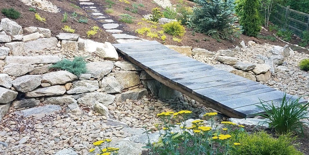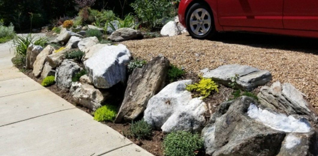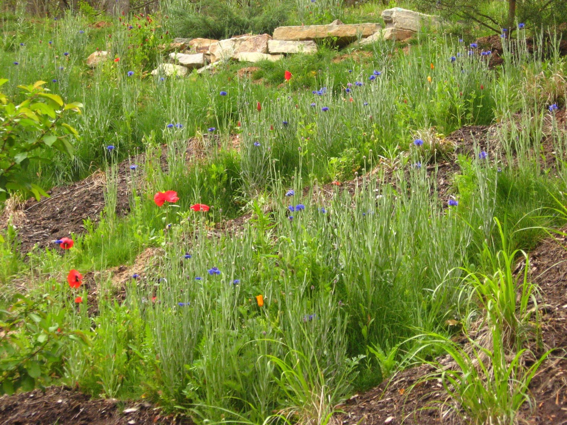 (PLEASE NOTE: PLANTING WORK IS INDEFINITELY ON HOLD AT THIS TIME.) In our 3 General Landscaping photo galleries you will get a feel for the breadth, quality and variety of our work: Stone and timber retaining walls, eyebrows, walkways, stepping stones, stairways, patios, wildflower meadows, slope plantings, boulders and hardscaping, annuals, perennials, lawn space, terracing, drainage, grading, planting beds and garden beds, trees of all types and sizes, native plants and shrubs, edible gardens, fire pits, outdoor fireplaces, outdoor kitchens, courtyards, cottage gardens, play areas, drainage work, ponds and water features... Please visit our other photo galleries