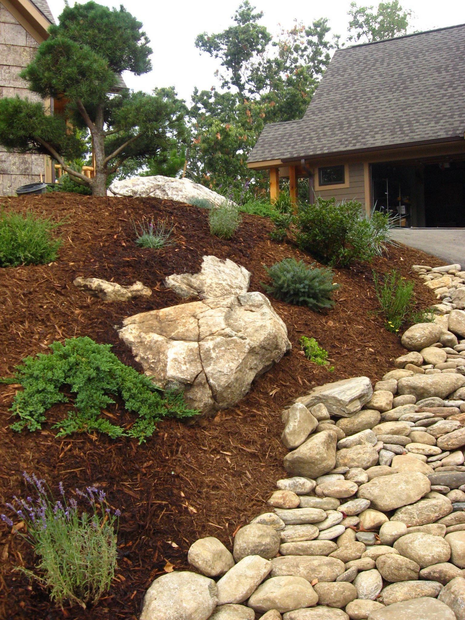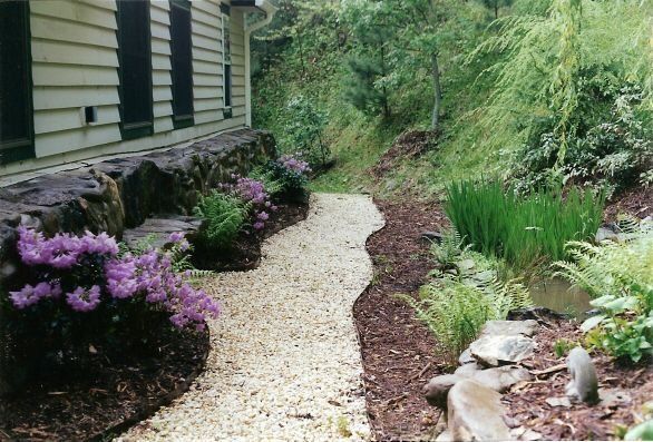 (PLEASE NOTE: PLANTING WORK IS INDEFINITELY ON HOLD AT THIS TIME.) In our 3 General Landscaping photo galleries you will get a feel for the breadth, quality and variety of our work. stone and timber retaining walls, eyebrows, walkways, stepping stones, stairways, patios, wildflower meadows, slope plantings, boulders and hardscaping, annuals, perennials, lawn space, terracing, drainage, grading, planting beds and garden beds, trees of all types and sizes, native plants and shrubs, edible gardens, fire pits, outdoor fireplaces, outdoor kitchens, courtyards, cottage gardens, play areas, drainage work, ponds and water features... Please visit our other photo galleries