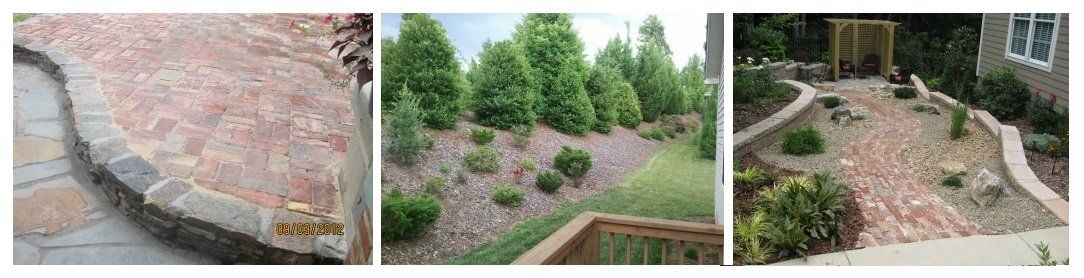 "We were blown away by the wonderful work that Integrated Landscaping of Asheville did on our job! From the beginning talks and sketches Bill listened to all that we wanted to express in our landscape and all of the problems we were currently having with drainage and lack of a usable and enjoyable yard. We had to have drainage work done to move water that was sitting up next to the house and carry it away. We also had a combined project of having Integrated Landscaping work with our carpenter, as we were also having a new screened porch, deck and covered grilling area built. Integrated Landscaping put in a beautiful brick patio and walkway to replace a dull and boring concrete slab and sidewalk. I also wanted a peaceful and natural garden area with raised rock beds and walkways, rock and mulch paths and easy maintenance. I had chosen most of my plants and the crew made it all come together! We enjoyed our wonderful outdoor living space for more than a year and had so many compliments. In the end we sold this house to move to more acreage and it was the outside living area and spaces that SOLD the house in just 3 months of being on the market!
