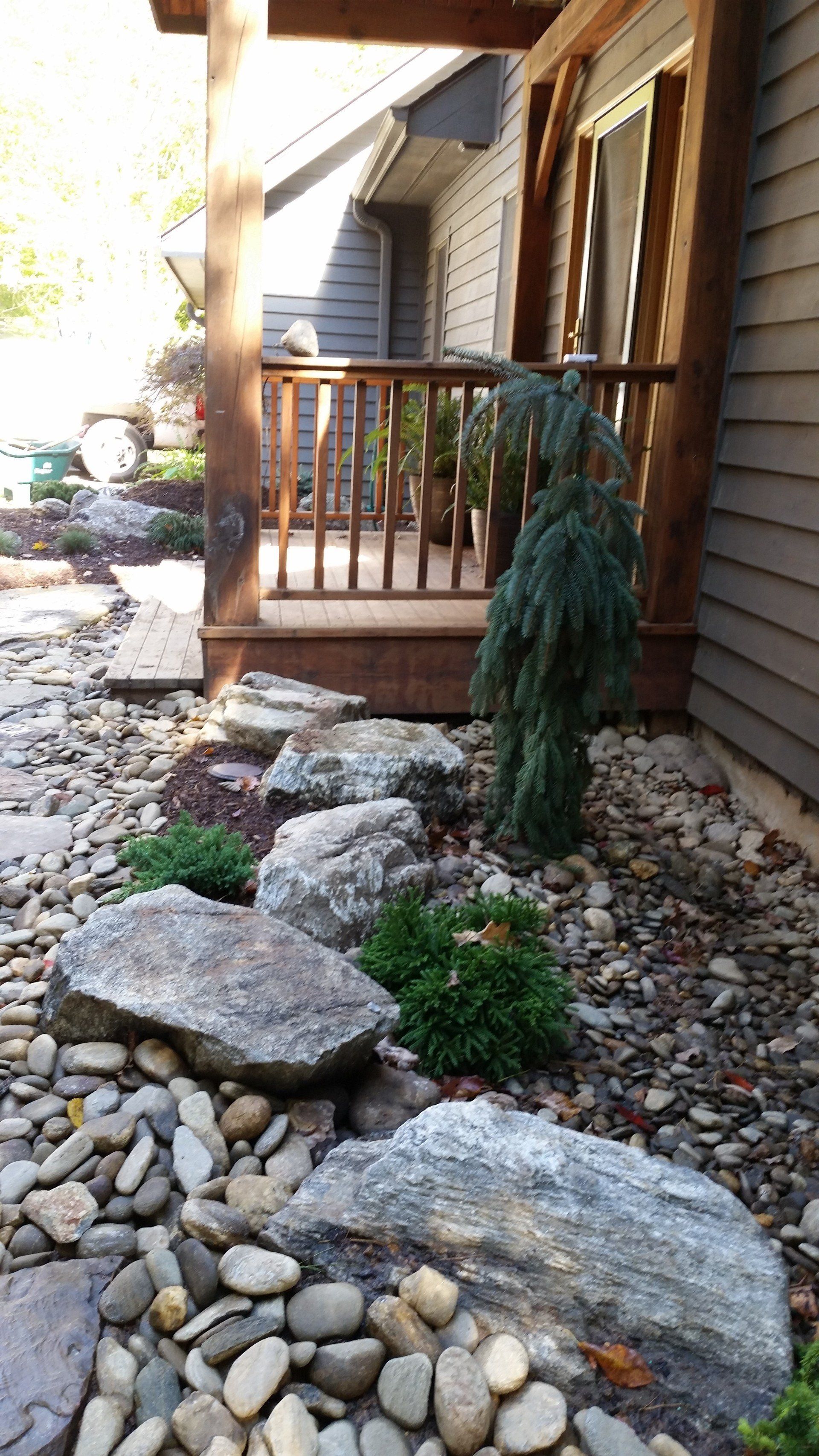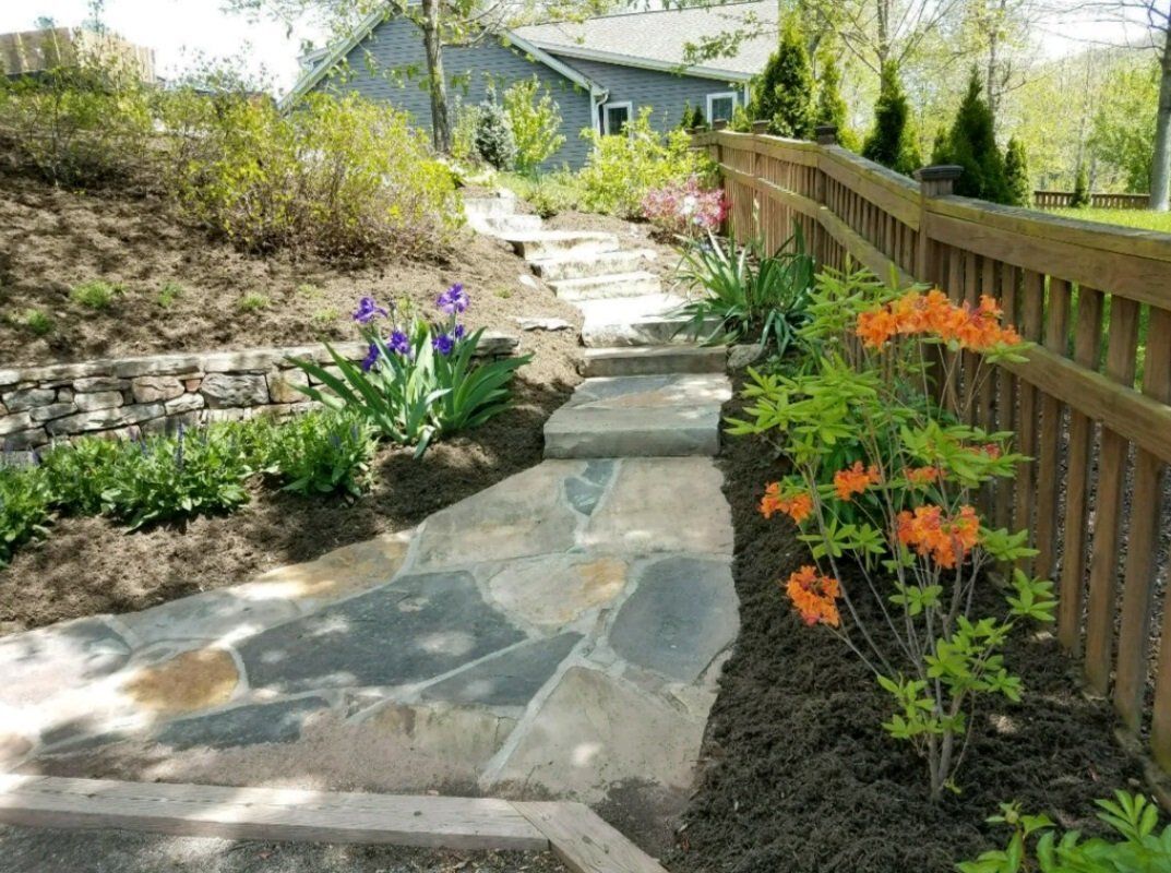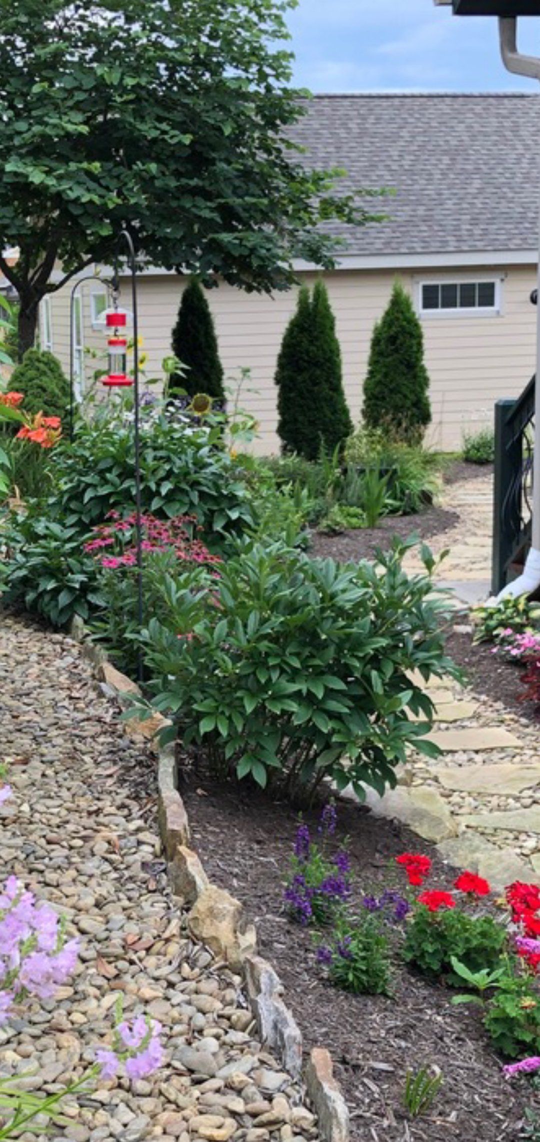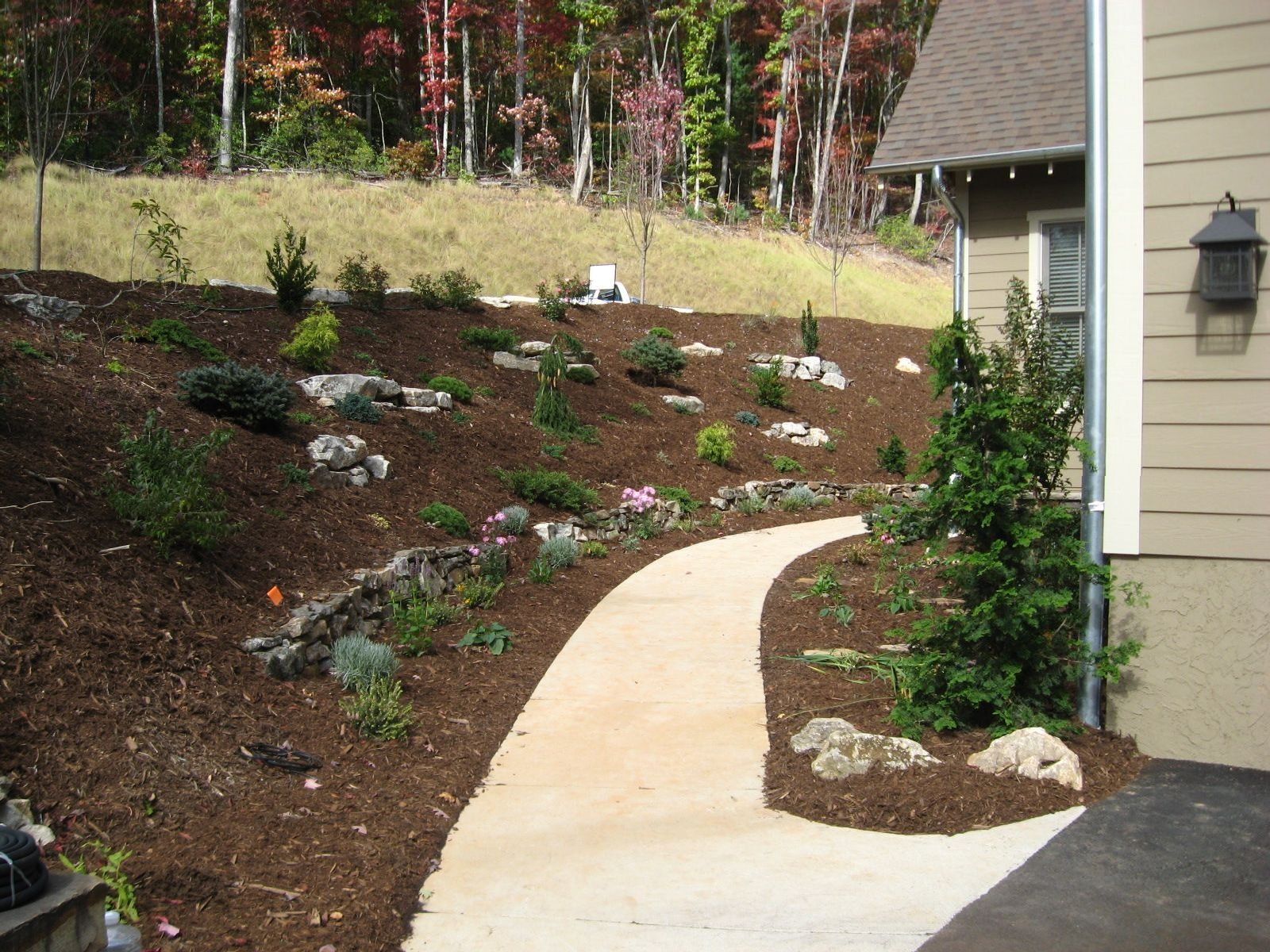 (PLEASE NOTE: PLANTING WORK IS INDEFINITELY ON HOLD AT THIS TIME.) In our 3 General Landscaping photo galleries you will get a feel for the breadth, quality and variety of our work: Stone and timber retaining walls, eyebrows, walkways, stepping stones, stairways, patios, wildflower meadows, slope plantings, boulders and hardscaping, annuals, perennials, lawn space, terracing, drainage, grading, planting beds and garden beds, trees of all types and sizes, native plants and shrubs, edible gardens, fire pits, outdoor fireplaces, outdoor kitchens, courtyards, cottage gardens, play areas, drainage work, ponds and water features... Please visit our other photo galleries
